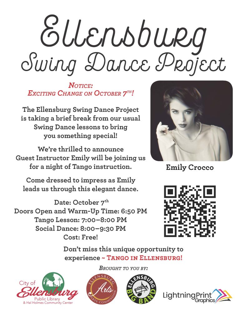The Ellensburg Swing Dance Project is taking a brief break from our usual swing dance lessons to bring you something special! Weβre thrilled to announce that Guest Instructor Emily will be joining us for a night of Tango instruction.